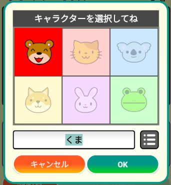 キャラクター下の名前をタップすれば、いつでもキャラクターや名前を変更することができます。