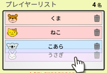 また、プレイヤーの順番は、プレイヤー名を長押しすることで自由に並び替えることもできます。