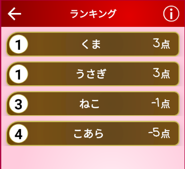 ゲーム終了時など、順位を確認したいときは【順位】をタップします。