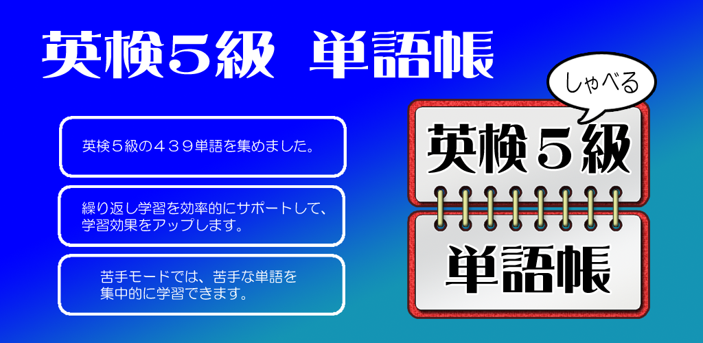 英検5級に含まれる439単語を効率的に覚えるためのツールです。