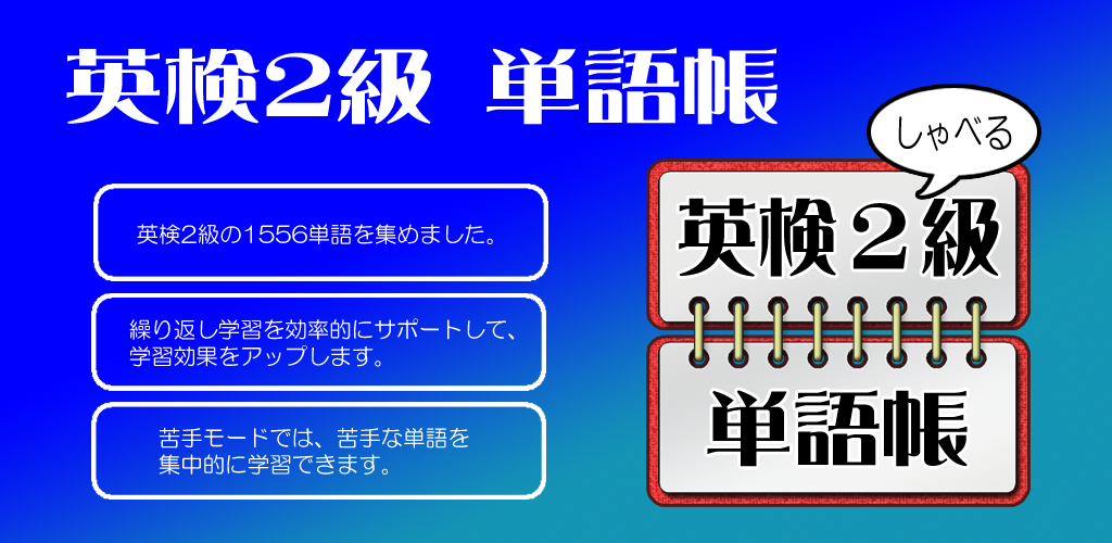 英検2級に含まれる1556単語を効率的に覚えるためのツールです。