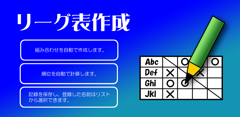 リーグ戦の組み合わせを作成し、記録するアプリです