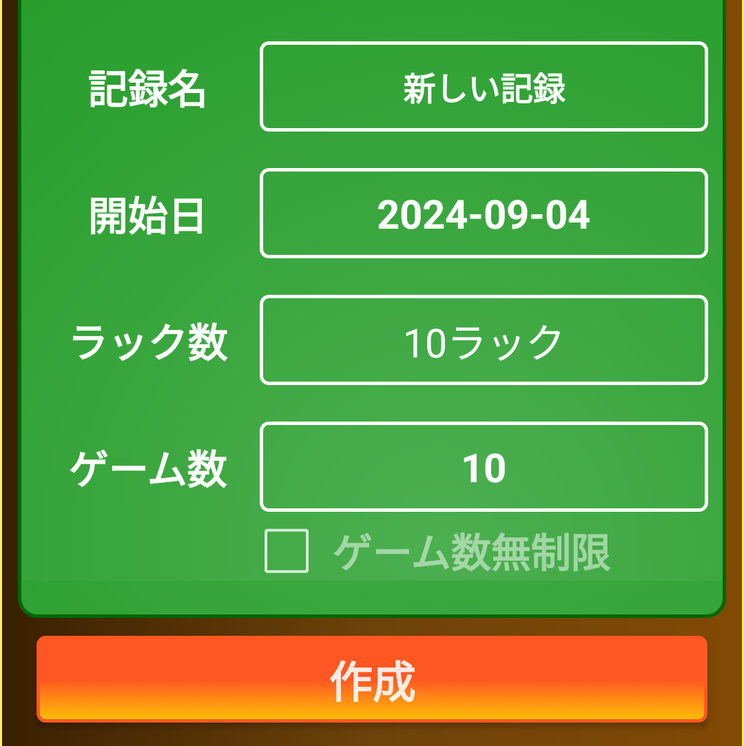 通常10ラックを1ゲームとしますが、5ラックを1ゲームとした簡易モードも選択できます。
