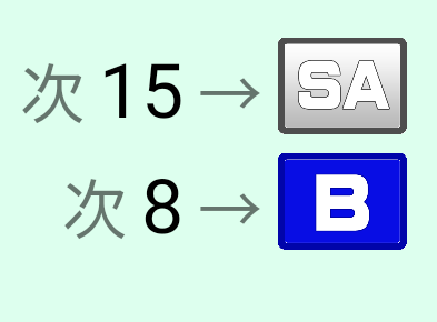 例では、次のラックで15点取ればSAクラスに上がり、8点ならBクラスに落ちるという意味です。